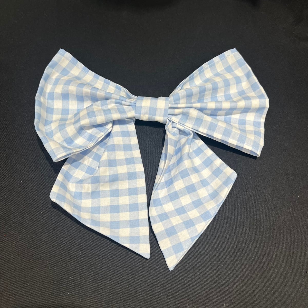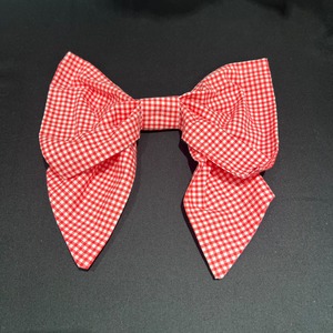 レッドチェックのトートバッグに自分の好きなリボンをつけることができます♪